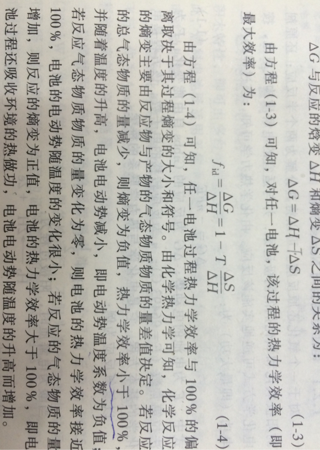 求问书中所说 电池过程热力学效率大于100% 是否正确