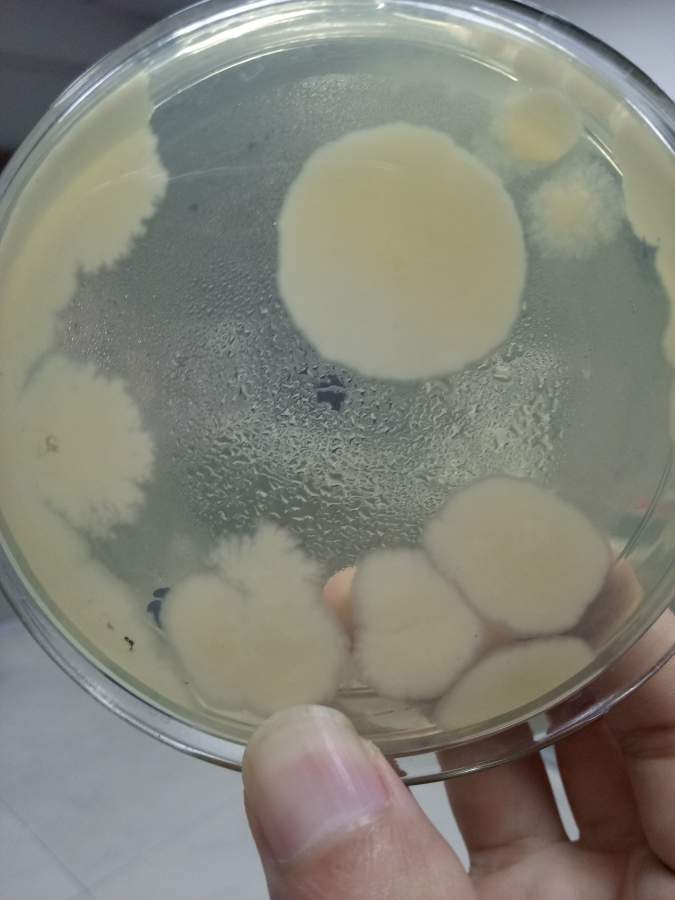 空白平皿污染成这样子 应该是基础操作的问题了。操作合格一般不容易染菌的。在外面不要随便打开培养皿。 1 培养皿先洗干净,烘干,再用报纸包好,高压灭菌。 2 灭完菌后,连报纸放烘箱过夜烘干,或者放超净工作台吹干。 3 在超净工作台里面打开,倒平板。 4 倒好平板,半开盖在超净工作台里开风机吹干。 5 盖好,倒置,备用。 发自小木虫IOS客户端 |