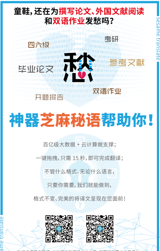 一、活动时间:2016年9月12日 - 9月23日 二、活动奖励 1、终身成就奖1名 奖品:获奖作品定制吉祥物玩偶 移动硬盘(1TB) 精美鼠标垫 (总价值1000元) 2、钻石成就奖1名 奖品:智能运动手环 精美鼠标垫 (总价值500元) 3、白金成就奖 3名 奖品:凌美钢笔 精美鼠标垫 (总价值300元) 4、阳光普照奖 10名 奖品:芝麻秘语大礼包 精美鼠标垫 (总价值150元人民币) 三、活动方式 1、用户根据芝麻秘语的产品特色以及LOGO,发表主题帖,主题贴内容是为芝麻秘语吉祥物。 2、例如:天猫的吉祥物是个猫 京东的吉祥物是个小狗,小芝麻的吉祥物是什么呢?如果你是绘画达人可以手绘出芝麻秘语的吉祥物,这样的人才超有机会获得一等奖!如果你画艺不精也没关系,只要把你心中所想描绘出来,说不定二等奖就是你的(毕竟是原创呐!)。如果芝麻秘语让你联想到什么也请把图片贴上来(最有创意的小伙伴可以搬走三等奖喔!) 3、工作人员会进行初选,之后由公司专业人员进行评选,选出最佳作品及二、三、四等奖作品。 四、产品介绍 : 一款能为研究生节省时间,帮助研究生高效阅读外文文献的利器 芝麻秘语是一款为研究生撰写论文,外语文献阅读量身定制的一款即时翻译工具。它支持25种主流语言,23种文档类型。依托百亿级句对多语言记忆库和4项国家级专利核心技术,可以帮助用户更快速、更准确地阅读外文文献以及论文报告等文件,大幅提高论文撰写效率。 芝麻秘语的特点:1、快速翻译:拖拽文件至图标,无需复制粘贴! 芝麻秘语支持的语言: 活动须知: 1、只有符合标准的帖子才有资格被抽取为获奖用户。 2、每个ID只能发表一篇帖子,禁止恶意刷帖,一经发现直接取消评奖资格。 3、禁止使用不文明用语、复制、篡改他人内容,或者盗用他人图片,一经发现直接取消评奖资格; 4、参与活动用户可观注芝麻秘语官方公众号(获奖名单将在芝麻秘语公众号率先发布),和小芝麻一起互动选出你心中的秘语吉祥物喔! 扫一扫,关注小芝麻服务号,有干货喔!) 5、中奖名单将在活动结束后5个工作日内公布,奖品在中奖名单公布后10个工作日内由工作人员联系用户并寄出。若参加活动,则表示接受本次活动的最终结果,请知悉。 [ Last edited by 584423339 on 2016-9-19 at 14:38 ] |
