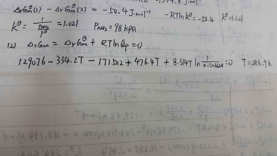 第4题的第2小问,286.9K时,△G=0,与答案符合。升高温度,△G应该是大于0的,反应不应该是向左移吗?为什么答案说温度升高,平衡右移呢? 发自小木虫Android客户端 |