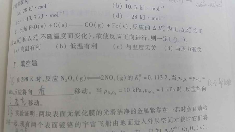 已知各压力和KpΘ,求反应移动方向 已有1人参与