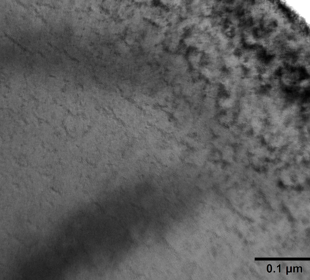 做了组钛合金的HRTEM,发现有波浪状纹路,都是在高指数下才看到,例如【133】上,转到低指数就没有。这个是否是莫尔条纹,有什么依据么?莫尔条纹是因为发生二次衍射产生的么? 有没有可能是因为发生spinadol分解产生的结构相同而成分不同的两相?求各位指导。万分感谢。 低倍 高倍 衍射 |