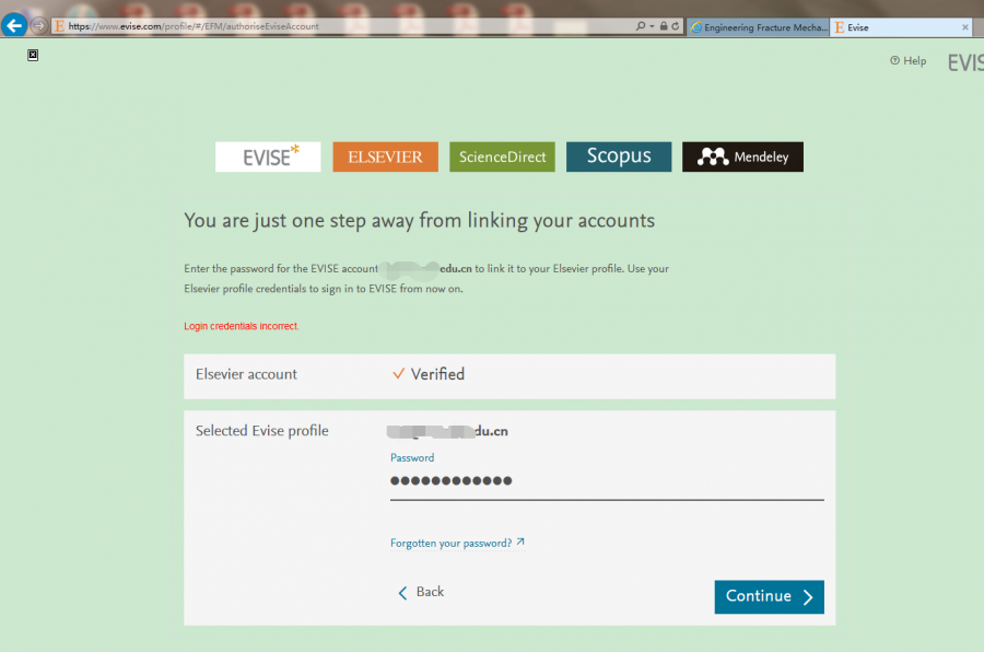 要投的期刊是Elsevier旗下的engineering fracture mechanics, 第一次投英文的期刊。在期刊首页https://www.journals.elsevier.com/engineering-fracture-mechanics/ 上面点击submit your paper,出现下图1,然后输入老板给的账号密码,就到了图2,点击select this account 就到了图3,图3上的password 输上老板给的password 不行啊 这是怎么回事?link accouts是干什么用的? 1.png 2.png 2.png 3.png |