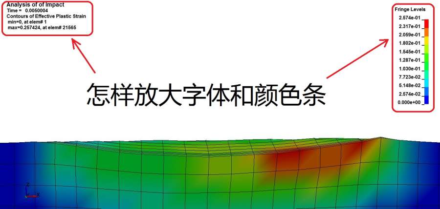 大家后,我使用LS-Prepost对LS-DYNA的结果进行后处理。 应力分布图如果直接截图或者使用输出图片的话,颜色条和字体显示得很小,放在论文中难以观察。 能不能通过修改LS-Prepost中某设置来放大应力分布图里的颜色条和字体的大小呢? 求高手指点。 image_000.jpg |