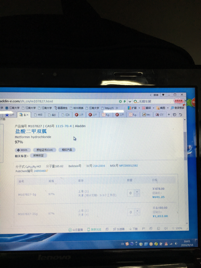 我是做小鼠糖尿病的,想买二甲双胍,可是在中国试剂网上看到沃凯的100g 99%二甲双胍才323元,阿拉丁上的97%二甲双胍5g 竟然641元,求大神指教,到底用什么样的二甲双胍啊? @lifeliuyan 发自小木虫IOS客户端 |