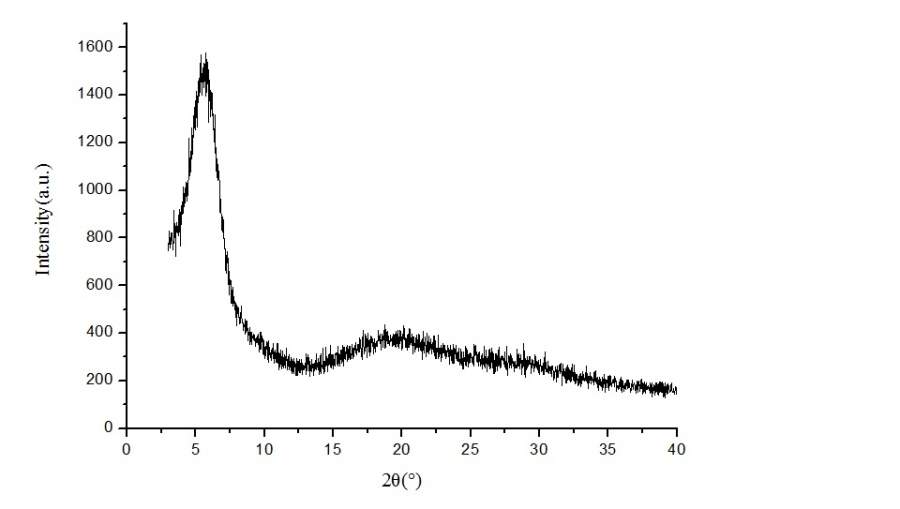 本人设计一个新的COF(共价有机骨架化合物)合成,初步进行了条件优化,对最好的一个产物XRD测试,测试条件参考国外顶级文献,40mA 40Kv 3°-40° 连续扫描 步长:0.02° 扫描速率:2°/min,得到了图示的结果。请问能说明什么问题,小角度的包峰有人在合成中见过吗?