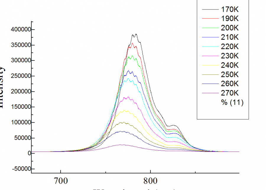 初次接触PL谱分析,激发光的波长为514nm,老板给出数据利用 origin 画图发现PL谱会有两个峰值,不是很明白为什么?而且还有一个问题就是,在780nm左右激发峰会随着温度升高而向短波长处位移;对于820nm左右的激发峰位置波长随着温度的升高而向长波长处位移。下面给出 origin 的图,求大神指教一下为什么会出现这种反常的现象? {96DV1H9)T3GZ~2_]H2XZ~5.png |