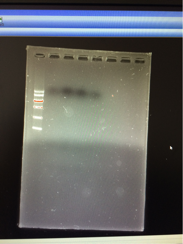 胶上前面白,后面黑,也看不到DNA条带,请问这是怎么回事?marker但是挺清楚的! 发自小木虫IOS客户端 |