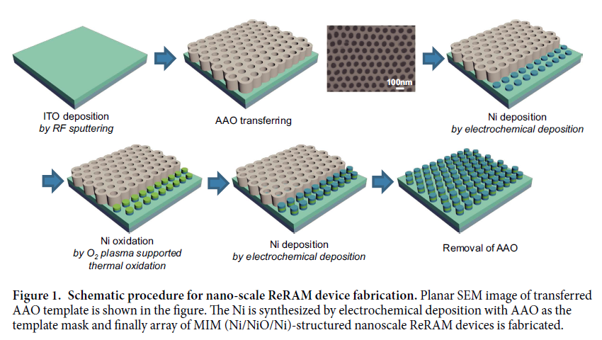 文章来自:www.nature.com/scientificreports 基于AAO模板法利用电化学沉积(electrochemical deposition)的方法制备纳米材料在Memory device中的应用 相信做过AAO的人一般都对用真空蒸镀的方法制备纳米阵列有所了解,但是如何用电镀电化学沉积的方法来制备纳米材料?这样可以给更多没有真空设备的人提供一个更好的研究手段。 In this study, AAO nanotemplates were used as the patterning mask for nanodot arrays, and the electrodes were fabricated by the electrochemical deposition method. 这里我对这个方法做一个简单解剖: 1. 准备一个导电基底,可以用ITO, FTO,或者金属等等; 2. 把AAO模板或叫AAO超薄模板转移到基底表面; 3. 用成熟的电化学沉积方法来生长镍; 4. 可以不用; 5. 可以不用; 6. 去除AAO 鼓励大家运用并充分发挥这一新方法的优势!欢迎讨论这个方法的优缺点,有同行尝试过的更可以分享一下经验。 文章下载链接:http://www.nature.com/articles/srep18967.pdf |