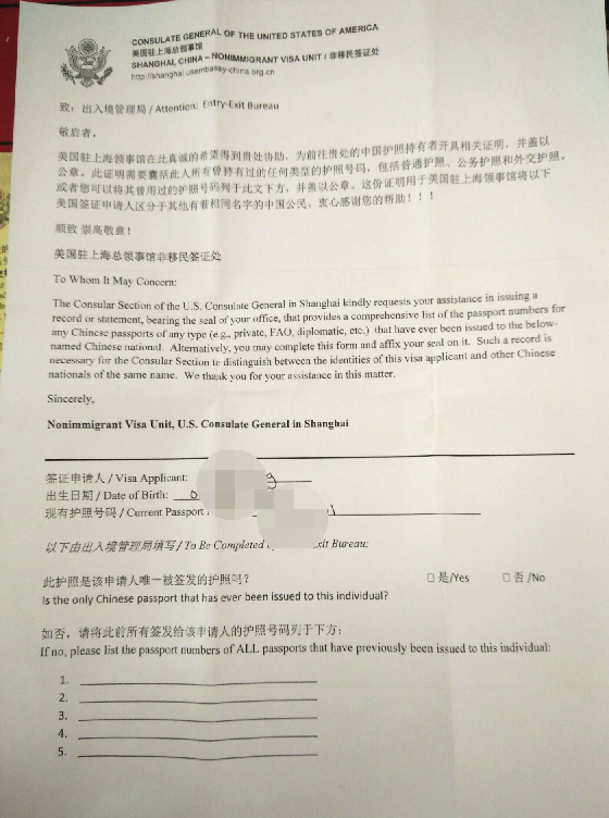 各位好, 我亲戚准备到美国的大学的实验室做研究一年、有邀请函和国家资金支持,一个月前去签证美国领事馆,要求补充材料 。交上去还不行,现在又来了一份要求 EEB letter。 应该是如下的证明? 要求出入境管理局盖章,可是到那个出入境管理局去啊? 打电话过去,出入境管理局说不能盖这种章。急死了!各位大神帮帮忙!! 出入境管理局证明.png |