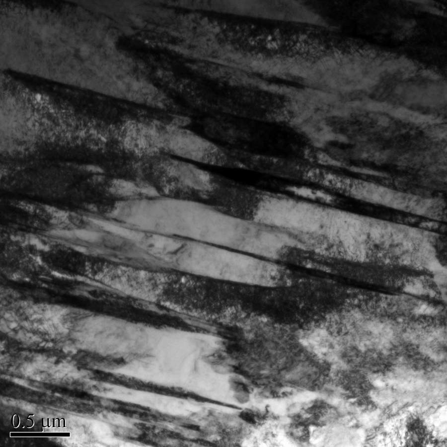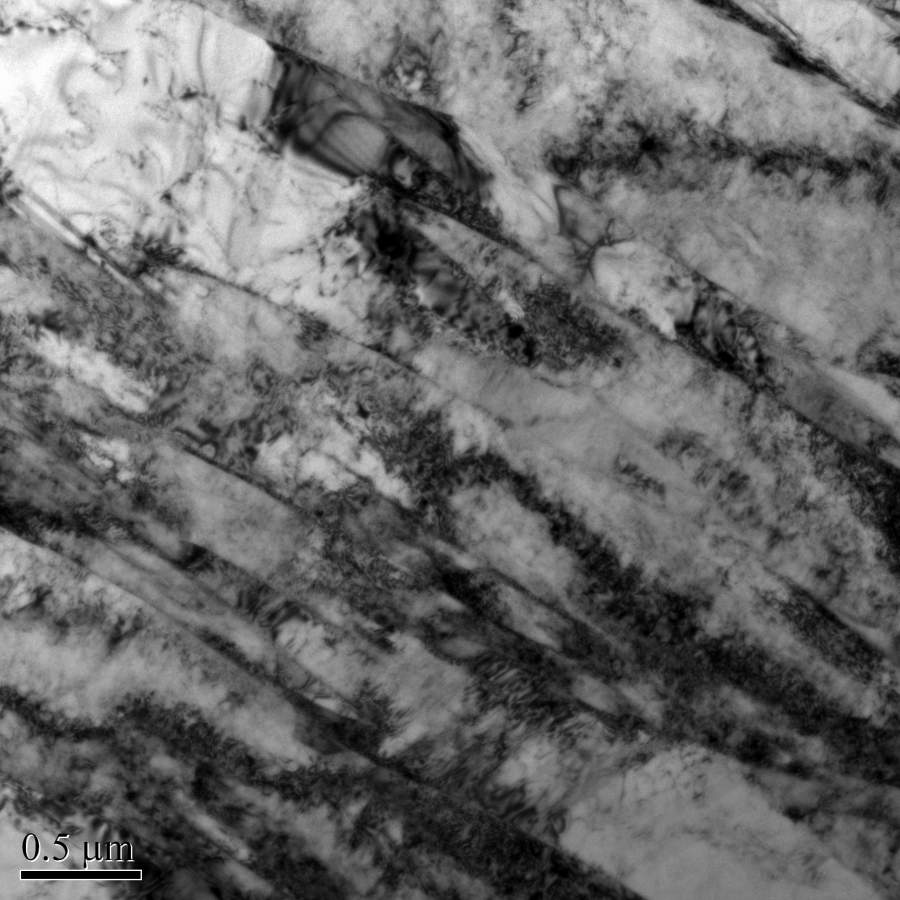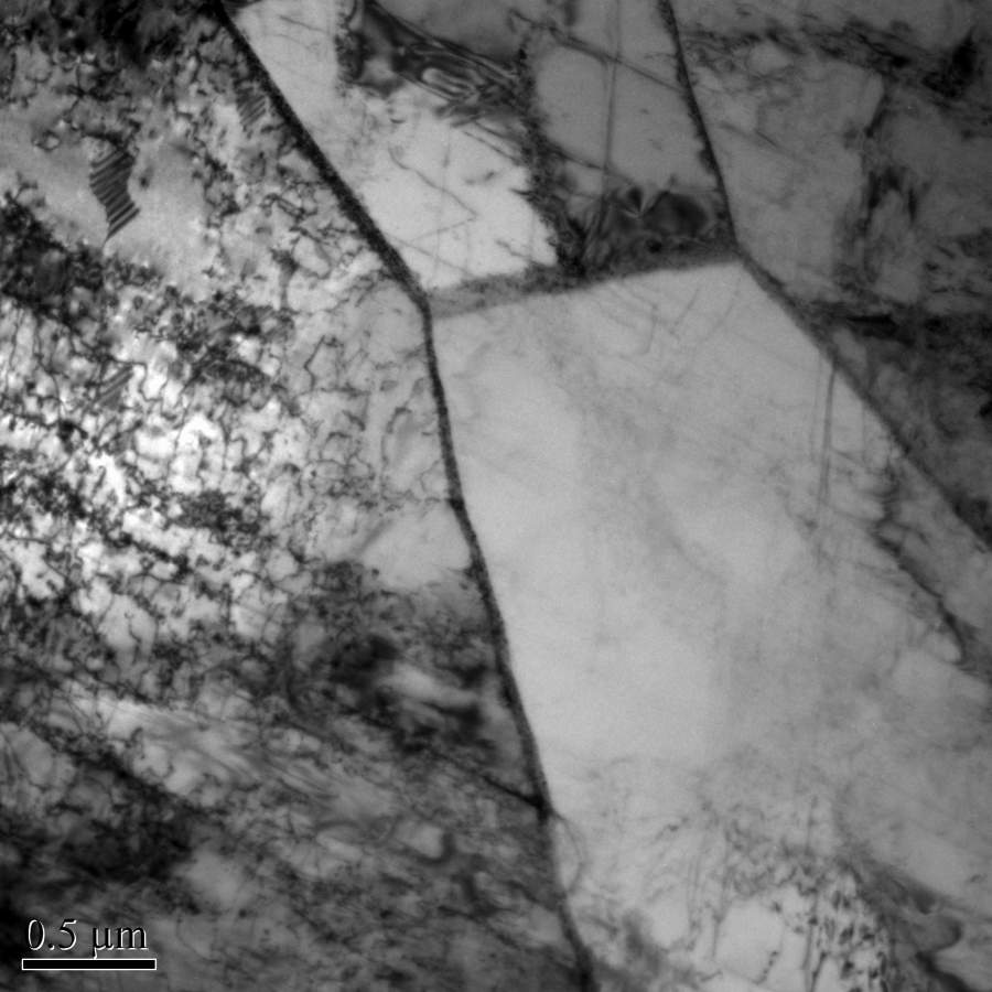 我做的不同应变循环的304L不锈钢的位错变化,发现材料里有需要条带的组织,看着像板条状的相,但和基体一样都是奥氏体,材料是热轧板,我怀疑界面弯曲的是热轧时的形变带,界面直的孪晶,不知道这么分析对不对? BM-E-15-0004.jpg BM-E-1000-0005.jpg BM-E-2500-0016.jpg BM-S-5100-0022.jpg |