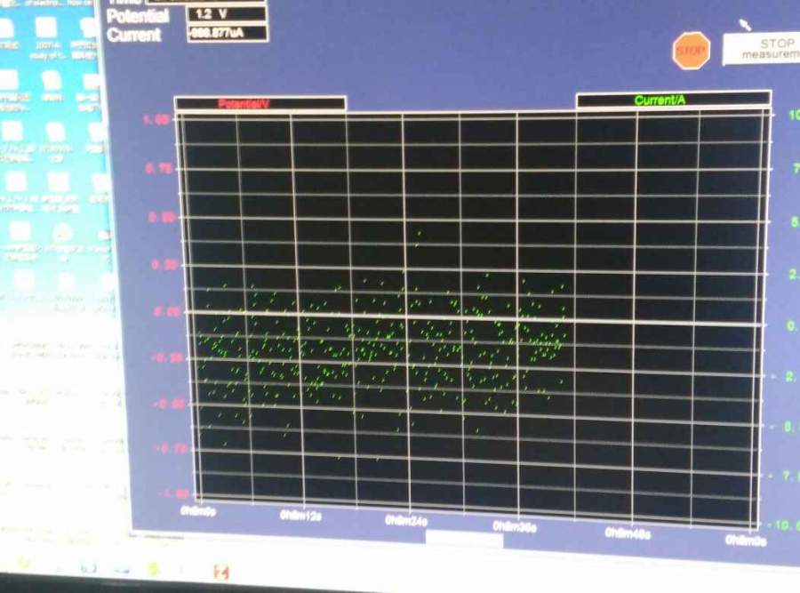 如题。设置完毕之后,记录电流,但是发现电流值波动很大。初期以为是测试体系夹子与测试对象接触不好,用砂纸打磨完毕之后,还是这个问题。