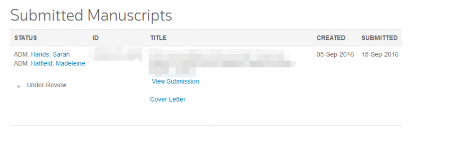 ScholarOne投稿大概20天,中途因为格式问题,编辑让改,改后上传状态变为Under Review,之前一直只有一个ADM,今天突然多了一个,不知道怎么回事? 投过ScholarOne的麻烦帮看看,如图所示。。。 S8MR`KZ[LE9B5IST7U9SNKR.png |