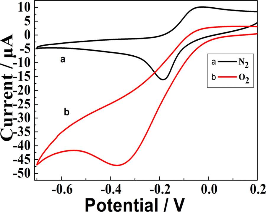 实验用的材料是Cu-hemin MOFs/GCE, Cu-hemin MOFs-GOD/GCE, 在PBS(pH =7.2)溶液中扫的CV,没有GOD的时候在-0.4 V的时候会出现一对峰,但加了GOD之后这个峰就不见了。。。。求各位大神答疑解惑。。。。。拜谢拜谢! 氮气氛围下 没有负载GOD的CV图.jpg 负载了GOD的CV图(请忽略红线。。。).jpg |