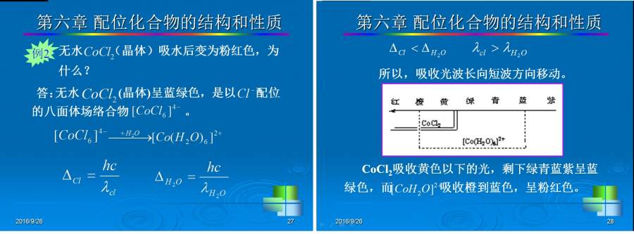 我想问市售用作干燥剂的蓝色硅胶的成分是什么,我知道的就是氯化亚钴,可题目说是钴离子(2价)的配合物,我只知道变为粉红色后的配离子是六水合亚钴,兰色的是什么配离子? 发自小木虫IOS客户端 |