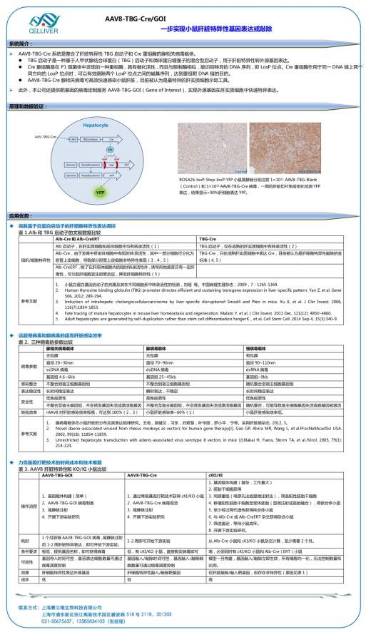 AAV-TBG-Cre/GOI: 一步实现小鼠肝脏特异性基因表达或敲除