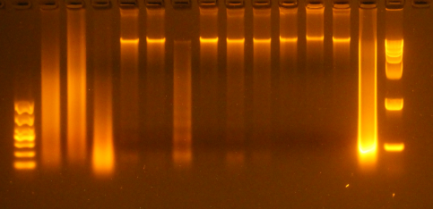 那个第二张图的所有图谱都模糊,你的胶放了一夜,缓冲液也要保证新鲜些才行。我的就是隔夜的,也遇到同样的情况,是DNA图谱,有RNA污染不说,条带也是巨模糊,点Maker的那个空尽量远离其他点样孔避免污染。 发自小木虫IOS客户端 |