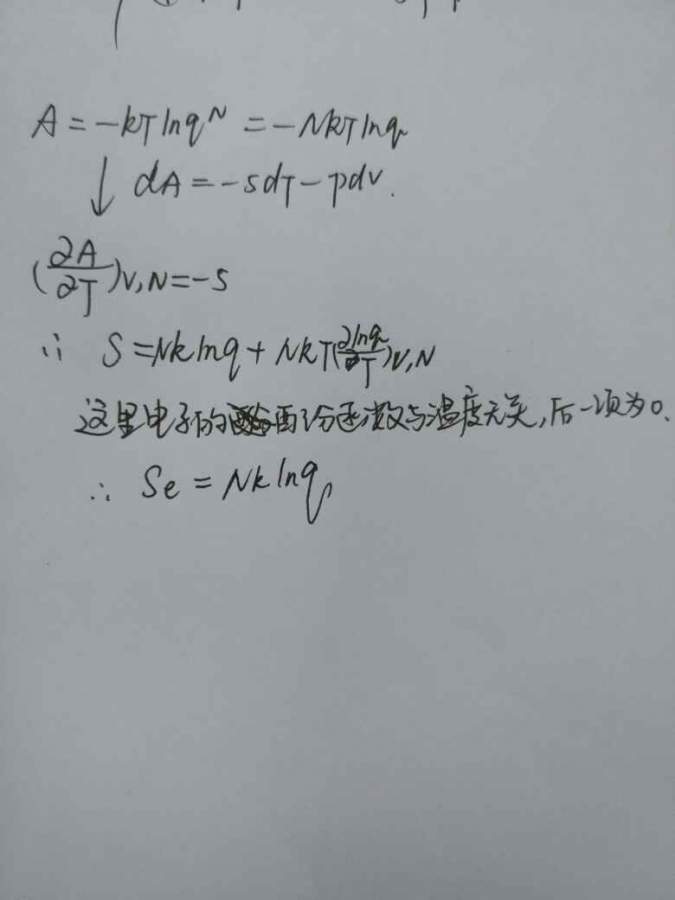你这个写的我没看懂。这道题目考查的是用统计热力学的方法计算理想气体热力学函数,可以计算所有的在第二章学过的热力学函数。首先是利用配分函数求出了亥姆霍兹函数A,然后通过公式导出的S,G,H等热力学函数。 发自小木虫Android客户端 |