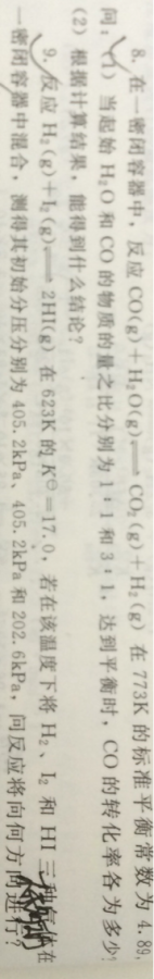 已知某反应的标准平衡常数和同一温度下的初始分压,怎样判断化学 反应的移动方向? 例如以下的第九题 发自小木虫IOS客户端 |