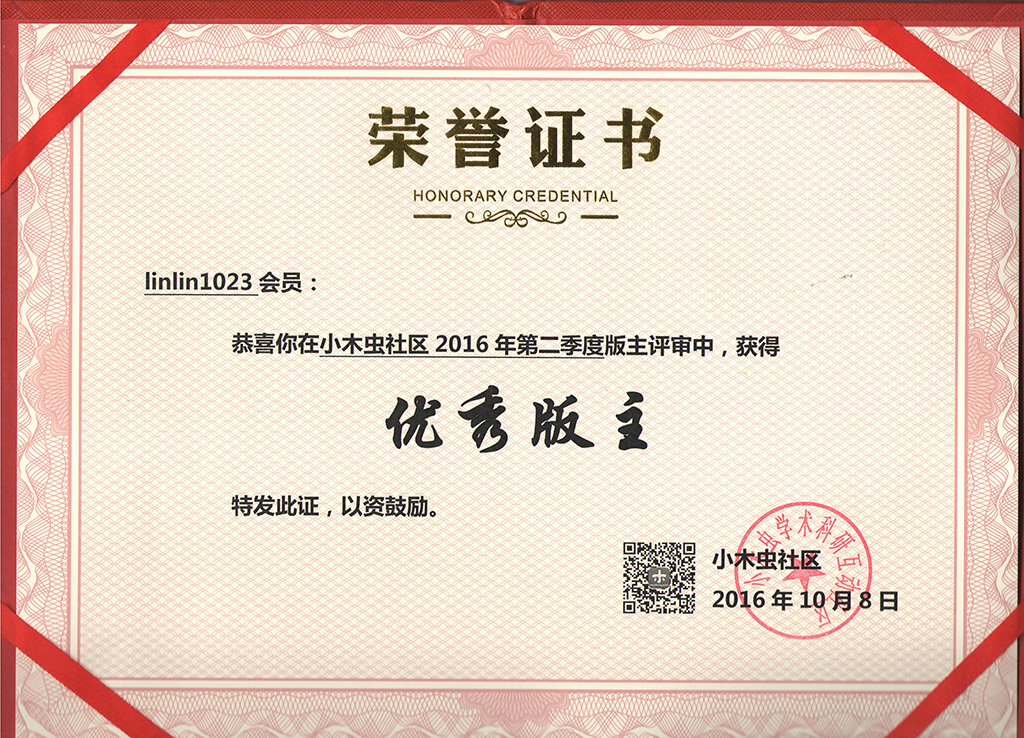 恭喜【linlin1023】获得2016年第2季度优秀版主