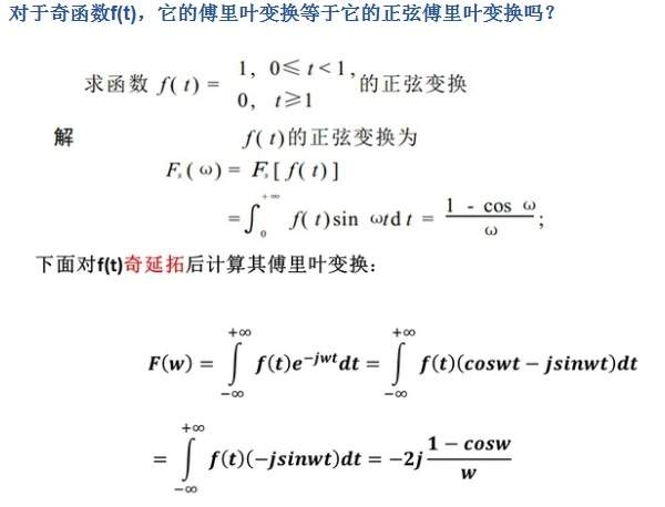 对于奇函数f(t),它的傅里叶变换等于它的正弦傅里叶变换吗?