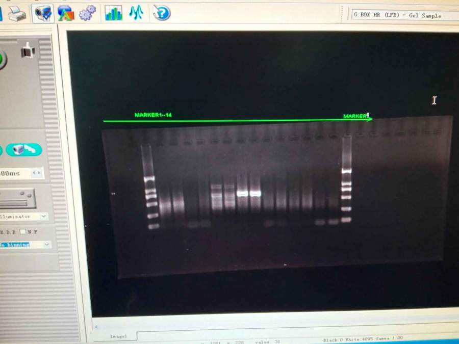 急!做线粒体的三段基因,跑出来的电泳为什么是这个样子的!Marker怎么都看不清?