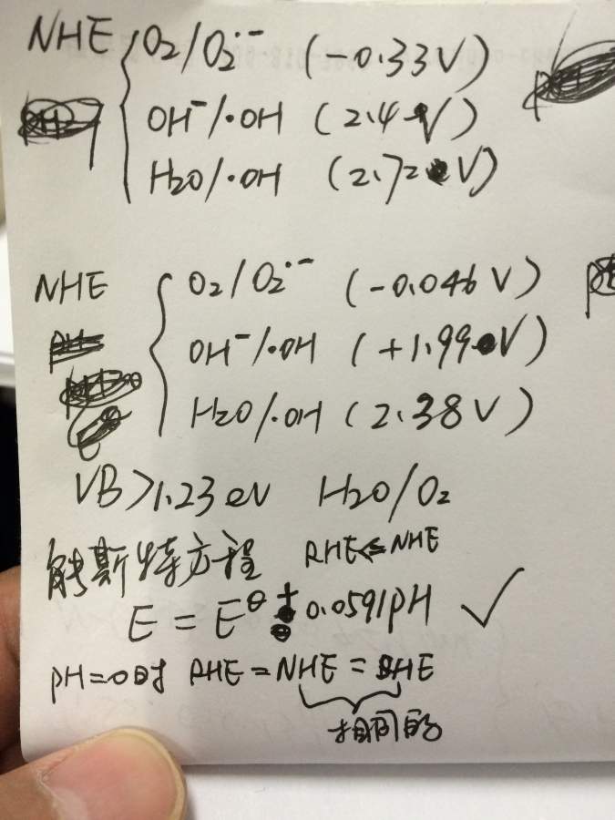 关于NHE与RHE的换算,和超氧自由基和羟基自由基的电极电势问题