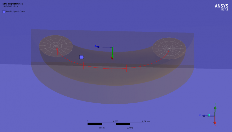 一定壁厚的管道,在管道的外表面有半椭圆的裂纹,用ANSYS求解三维裂纹前缘各处的应力强度因子。建模时怎么样建?二维裂纹可以用KSCON的命令划分奇异网格但是三维裂纹没有直接产生奇异单元的命令?裂纹形式如图,求各位大神给指导一下!!!有没有实例或者代码?非常感谢 model-crack.png |