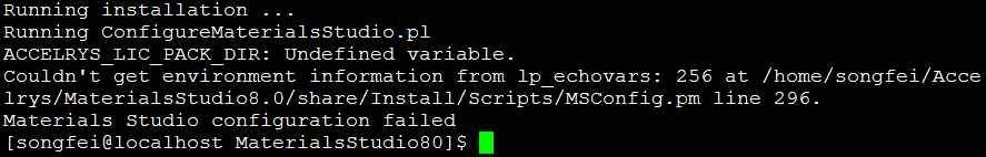 在linux服务器上安装Material Studio 软件时,遇到问题: ACCELRYS_LIC_PACK_DIR: Undefined variable. Couldn't get environment information from lp_echovars: 256 at /home/songfei/Accelrys/MaterialsStudio8.0/share/Install/Scripts/MSConfig.pm line 296. Materials Studio configuration failed。求助ing! !!谢谢啦~~~? 发自小木虫Android客户端 |