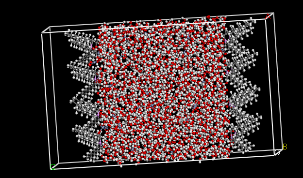 Forcite 动力学模拟层层之间的相互作用,为什么跑完之后中间盒子里的分子跑到两边去了