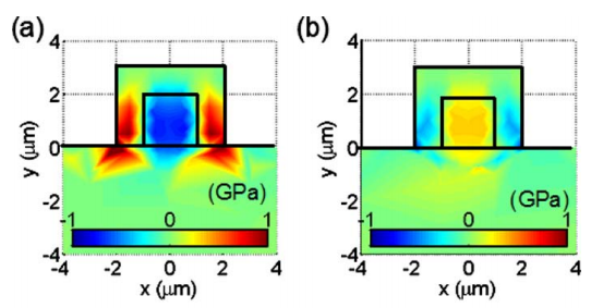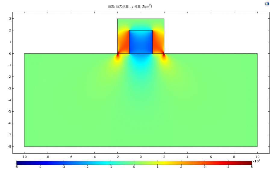 仿真内容:在最上层氮化硅中存在1GPa的初始应力(Residual Stress), 仿真此结构的应力分布。 结构如图: 疑问:文献中在不同材料的边界处是连续的并且应力值很小,而我的结果在边界处值很大,并且不连续,请问是什么原因? 文献中结果如下: 我的结果: |