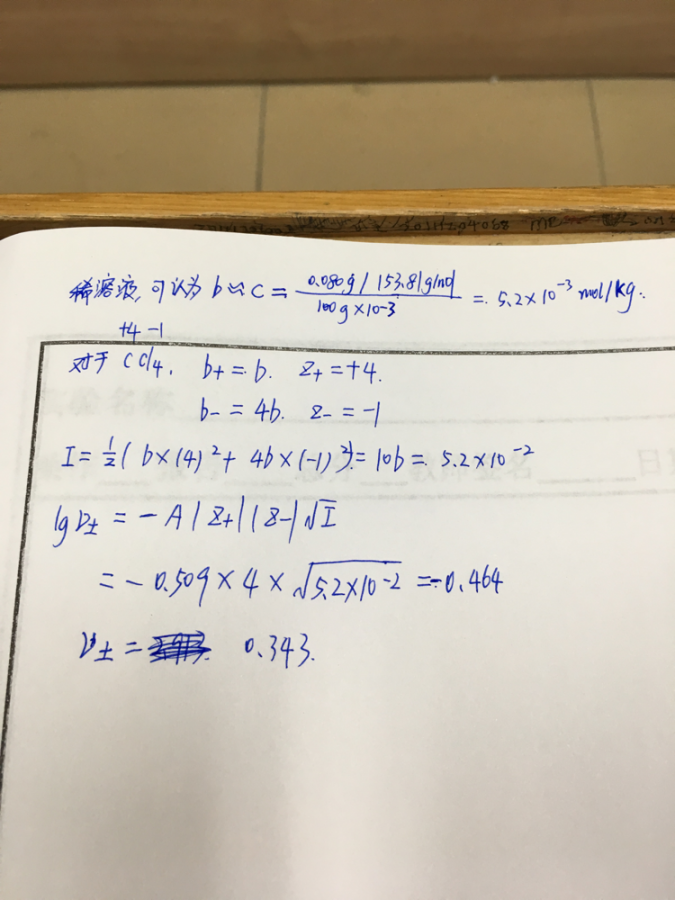 方法错了,四氯化碳在水中怎么可能解离,何来的总离子强度。
