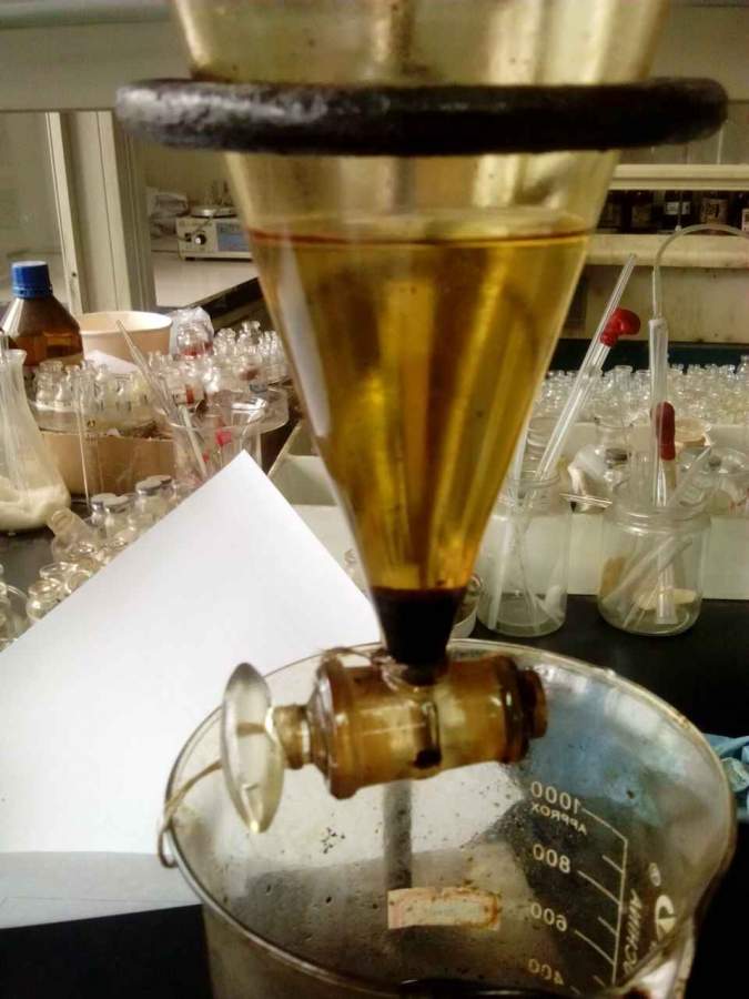 我一般都是把那部分单独放在一个瓶子,然后跑板,或者就那么加溶剂放着看看有没有物质,不过结果是没什么东西,而且特别粘稠,所以楼上有说是乳化物我赞同,但是你可以试一下你的,可能就不一定有什么呢,实验嘛 发自小木虫Android客户端 |