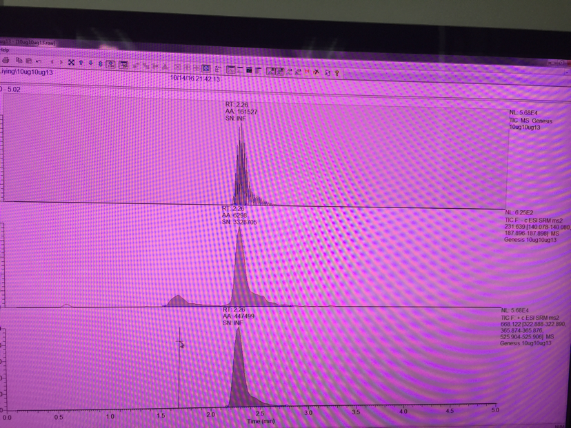 如图,分离两种物质,梯度为水相:有机相=60:40。反相柱。第一种物质前面那一坨峰是前沿峰还是别的杂质?怎样把它除掉呀?还有我的物质浓度为10ug/ml,为什么响应只有E的2次方? @lifeliuyan 发自小木虫IOS客户端 |