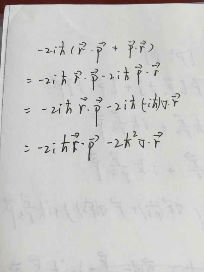在书上看到这样的计算过程,在第三步到第四部不能理解,第三式中后一项将p拆开成-ih▽刚好和第四式后一项对上,但是前面一项在变到第四项时前面为何多了一个2? 还有,如何理解分数的形式,如C?(A/B)应该理解为C?(1/B)?A还是C?A?(1/B) 发自小木虫IOS客户端 |