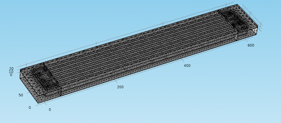 小弟打算对叉指传感器的电容进行模拟。 但由于纵横比太大(叉指电极长570;厚度0.2),在进行网格化的时候遇到了困难。 小弟参考COMSOL官网的方法(http://cn.comsol.com/blogs/impro ... -with-swept-meshes/)进行扫掠处理: 先将电极部分进行切分,再用扫掠的方法将中间指状部分进行网格化。 但现在遇到的问题是:中间指状部分已成功网格化,而两边的叉指电极两头(下图绿色部分)却不知道怎么去网格化。 由于小弟刚接触COMSOL不久,对软件不太熟悉,还希望各位大神能详细指导。。 2016-09-17_013908.png 2016-09-17_013944.png 2016-09-17_014024.png |