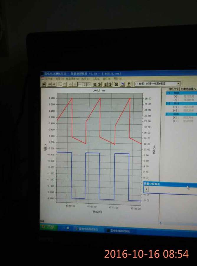 看你的这个曲线图上面是电压,下面是电流吧,恒流充放电。充、放电工步之间没有搁置工步吗?我接触的恒流充放电的电压都是曲线变化的(我新人,还没见过直线这种变动)。而且你这在充放电转换的时候电压瞬间就增加/减少得好多 ,难道不是一般意义上的电池?发自小木虫Android客户端 |