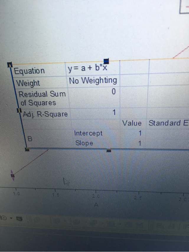 线性拟合完了之后,出现一个表格,内有斜率截距、拟合率等参数