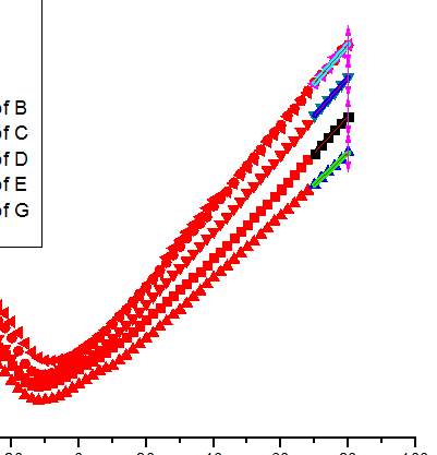 origin我想直线拟合最后五个点,然后作反向延长线和X轴相交求出截距。如今我拟合出了五个点的线段却不知道怎么延长,求大神指导。