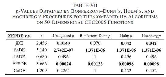 请问实验结果Bonferroni–Dunn, Holm, and Hochberg procedures分析用什么工具可以得到p值,如下图所示: 第二列z和第三列unadjusted各代表什么,怎么得到的? |