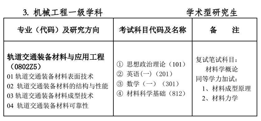 欢迎报考兰州交通大学材料类专业硕士研究生 兰州交通大学材料类专业依托本校机电工程学院及材料工程系办学。拥有“轨道交通装备材料与应用工程(0802Z5)”二级学科博士学位、硕士学位和“材料科学与工程”一级学科硕士学位授予权。“材料科学与工程”学科是甘肃省重点学科,具有材料物理与化学(080501)、材料学(080502)和材料加工工程(080503)3个二级学科学术型硕士研究生和“材料工程”专业学位(085204)工程硕士培养资格。 培养的研究生主要在轨道交通、装备制造、冶金、化工、工程建设等领域从事产品生产、材料制备及工艺设计、材料改性、新材料开发、材料分析检验、材料成型设备开发等工作,或在高校从事教学和科学研究工作。 一、研究生指导队伍 现有专职教师20人,其中教授5人(冯利邦,王彦平,徐卫军,王顺花,耿中荣),副教授8人(郑韶先,王新伟,徐立新,强小虎,黄大建,褚克,张媛,刘艳花),高工1人(杨妹娟),讲师6人。其中博导1名,硕导11名,研究生指导教师的具体信息参见: http://jdxy.lzjtu.edu.cn/?page_id=291。 材料科学与工程学科现有两个研究生指导团队,具体情况如下: (一)“轨道交通新材料与表界面技术”团队 指导老师:冯利邦(带头人),王彦平,强小虎,徐卫军,徐立新,黄大建 相关科研团队: (1)轨道交通新材料与表界面技术:冯利邦,王彦平,强小虎,刘艳花,史雪婷 (2)材料改性与复合新技术:徐卫军,徐立新,黄大建,周富涛 (二)“金属材料与功能材料”团队 指导老师:王顺花(带头人),郑韶先,王新伟,耿中荣,褚克,张媛 相关科研团队: (1)焊接技术及零部件失效分析(高性能金属结构材料与高效焊接技术):王顺花,郑韶先,赵锡龙,李芳红,孟倩 (2)新能源与功能材料:王新伟,耿中荣,褚克,张媛,杨妹娟,韩兴瑞 二、研究生招生专业介绍 (一)材料物理与化学(080501) “材料物理与化学”是材料科学与工程一级学科所属的二级学科,是一门以数学、物理和化学等自然科学为基础,应用现代物理与化学研究方法和模拟计算技术,从分子、原子、电子等多层次上研究材料的物理、化学行为与规律的学科,探索材料组成-结构-性能之间的内在关系,实现材料的可控合成与制备,致力于先进材料与相关器件的研究开发,揭示材料物理本质及其演变规律,为材料的微结构设计、性能预测及制备工艺优化与合理使用提供科学依据。本学科主要培养具有坚实的材料物理化学基础理论和系统的材料物理化学专门知识、能够从事材料科学相关的教学、基础研究、材料生产与应用和新材料开发等工作的人才。 主要研究方向:材料的结构与性能,纳米材料的物理与化学特性,高聚物结构与性能,光电功能材料,材料界面物理化学。 (二)材料学(080502) “材料学”是材料科学与工程一级学科所属的二级学科,是一门实用性较强的应用基础学科,它既要探讨材料的普遍规律,又有重要的工程应用价值。本学科主要研究材料的组成、结构、加工、性质和使用性能之间的相互关系,为材料的设计、制造、工艺优化和合理使用提供科学依据。本学科主要培养掌握材料科学与工程学科扎实的基础理论与系统的专业知识,了解本学科的进展和发展动向,具备从事材料科学与工程领域的科学研究、教学工作和其它专业技术工作能力的高层次人才。 主要研究方向包括:机车车辆新材料,轨道交通新材料,先进高分子及其复合材料,新能源及磁性材料,功能界面材料,生物材料和环境材料。 (三)材料加工工程(080503) “材料加工工程”是材料科学与工程一级学科所属的二级学科,是以金属学、弹塑性力学、机械、自动控制等为理论基础的交叉学科,是研究控制材料的外部形状和内部组织结构,以及将材料加工成人类社会所需求的各种零部件及成品的应用技术的学科。本学科主要培养掌握材料制备方法、成形加工工艺、成形过程控制方法、材料组织与性能间的关系、成形设备及其控制等专业知识、具有开拓精神和国际化特点的高层次工程技术人员和开展本学科领域前沿课题的研究的专门人才。 主要研究方向:高效焊接工艺及设备,轨道交通新材料及先进加工技术,塑性成形理论与模具设计,金属材料液态成形技术及控制。 (四)材料工程(085204) “材料工程”为材料科学与工程学科专业学位硕士研究生培养专业,培养掌握材料工程领域坚实的基础理论和宽广的专业知识,掌握解决材料工程问题的先进技术方法和现代技术手段,工程实践能力强并具有一定创新能力、能够独立担负工程领域专业技术和工程管理工作的人才。 本工程领域主要研究方向包括:轨道交通新材料及先进加工技术,功能纳米界面材料与表面防护技术,高性能结构材料的制备与成型技术等。 (五)轨道交通装备材料与应用工程(0802Z5) “轨道交通装备材料与应用工程”是机械工程一级学科所属的二级学科,该学科以轨道交通装备用材料为研究对象,为新兴的交叉学科,涉及机械、材料、物理、化学和表面工程等多个学科领域。其学科内涵就是研究现代轨道交通装备服役条件下材料的结构、性能与应用的基本理论,探索满足轨道交通装备性能要求的新材料及其应用特性。本学科主要培养具有扎实基础知识与实践能力、具备现代轨道交通装备材料设计与研发能力及良好的职业素质与创新能力的应用型、复合型高素质优秀人才。 主要研究方向为轨道交通装备