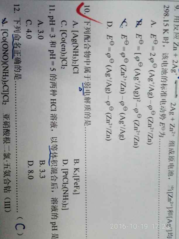 你可以比较一下ABC三者和D的区别,D的电离很微弱,因为D这个物质就是一个中心原子加四个配体,要电离,只能将配体解离出来,然而这种配合物的稳定常数又很大,很难解离,所以D是弱电解质 ABC都是离子配合物,易电离产生外界离子和配离子,外界离子对应的就是氯离子,钾离子,氯离子 发自小木虫Android客户端 |