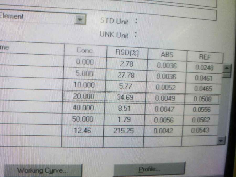 如果是在传统实验参数下测的的数值,那基本上这几组数值都属于仪器不稳定误差了。先检查一下标准溶液有没有配错,再检查灯有没有坏,我觉得一般情况下灯坏了不是这个现象,另外就是石墨炉,进样针有没有扎进去,石墨炉是不是该换了 发自小木虫Android客户端 |