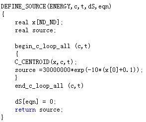 各位大神,小弟目前做的一个case要添加能量源项(编写如下图),在这儿我用了begin_c_loop循环,但我看帮助上有一个动量源项的udf并没有用循环(它的值与y坐标值有关,也用到了C_CENTROID),我就疑惑了,到底用不用循环呢?求指导![]() ![]() ![]() 截图10.jpg@wuming524 |