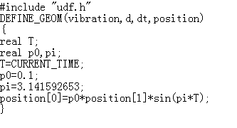 在一个简单的振动仿真中,想让中间的线正弦振动,图形及udf如下,请问虫友,我这个为什么一直出错? 振动.png udf.png@wuming524 |