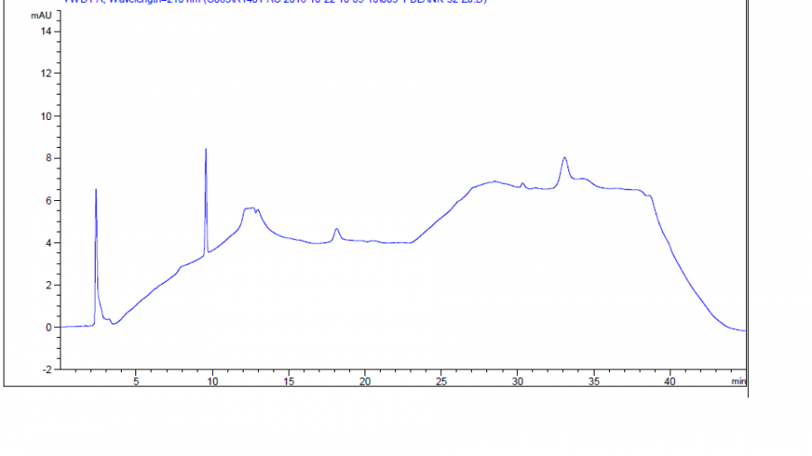 万能的虫友们!帮帮忙! 现在在做药物分析,需要梯度洗脱。总是出现鬼峰,急求解决办法!![]() ![]() 梯度为: min A 乙腈 B水 0 40 60 8 70 30 20 70 30 25 90 10 35 90 10 40 40 60 45 40 60 流速:1.0 mL/min,柱温:35°C,检测波长:210nm,进样体积:10uL,溶剂:乙腈。 空白溶剂.png |