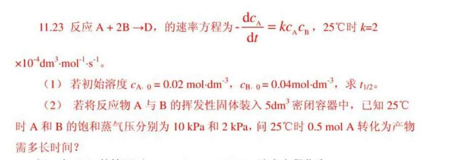 第二问中,为什么r=2k[A][B],按照条件给的,不应该是r=k[A][B]吗? 发自小木虫Android客户端 |