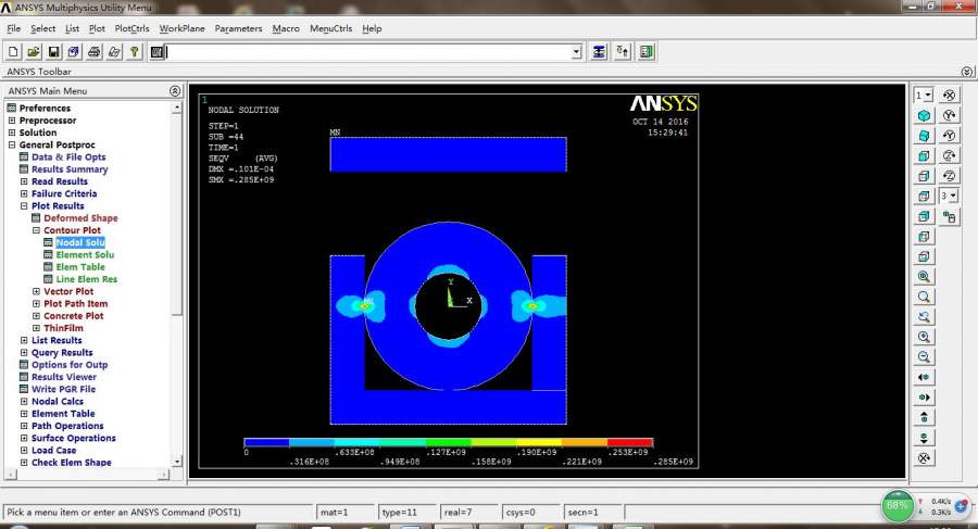 如图所示 ,O型环材料是金属的, 目前试的是用不锈钢或者铜 ,上面有3毫米间隙, 右面向左移动压O型环 ,左面和下面建成接触, 想要的结果是与上面接触, 接触应力大于材料俩倍屈服应力就可以了 ,但是我只能做到右面移动0.01毫米。。。这远远不够 。希望各位大神看看应该怎么修改,是不是应该涉及单元生死的知识,谢谢大家。 7DEC48216700160D3417412EF154D415.png |