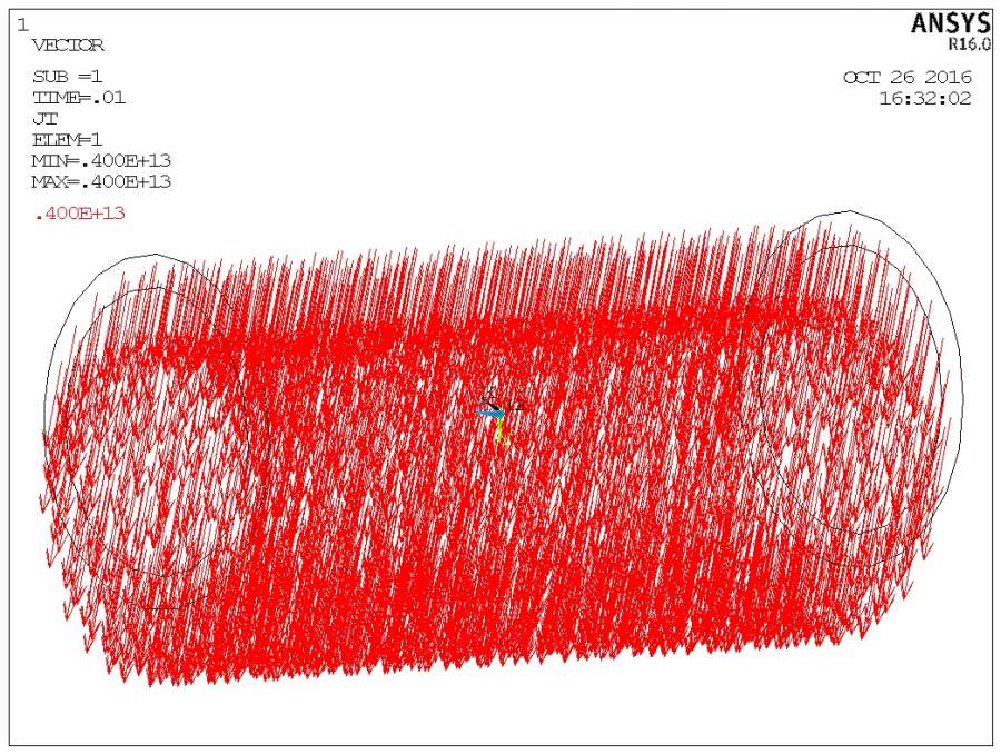 我是在局部柱坐标系中建立的螺线管线圈,并将全线圈的单元坐标系设置为所建的局部柱坐标系,然后施加源电流密度载荷(0,JS,0)。但结果显示,源电流密度还是施加在总体笛卡尔坐标系中的y轴方向,如图所示。求大神指导! noingot000.jpg |