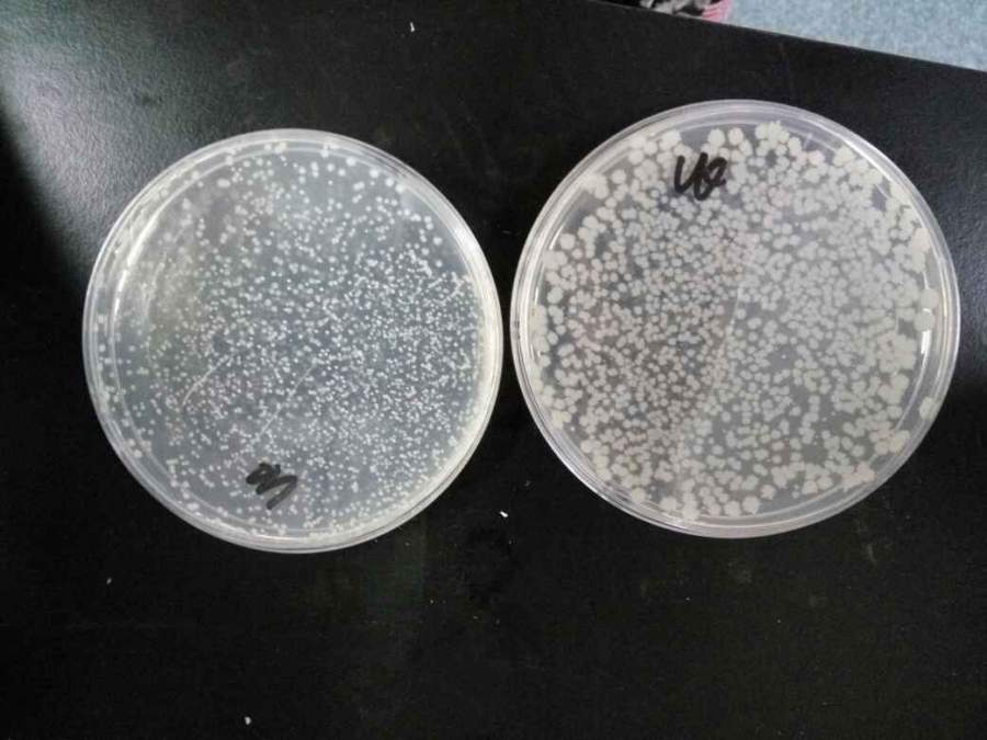 化学发制作枯草芽孢杆菌感受态,然后转入重组质粒,对照(空载体)12小时就长了满满一板,然后实验组只有一些透明的小点点,不知是什么菌,继续培养36小时,实验组竟然长了几十个枯草,然后还有一些杂菌 ,下面是培养48小时的图片,左边是对照组,右边是实验组 @天使托 发自小木虫Android客户端 |